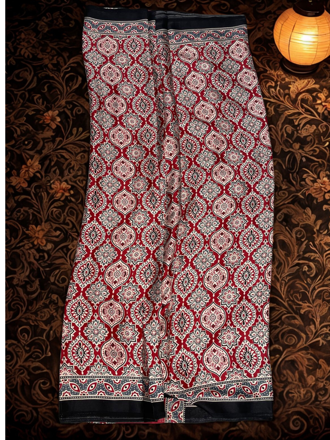 Be the first to review “Ajrakh Modal Soft Silk Saree”