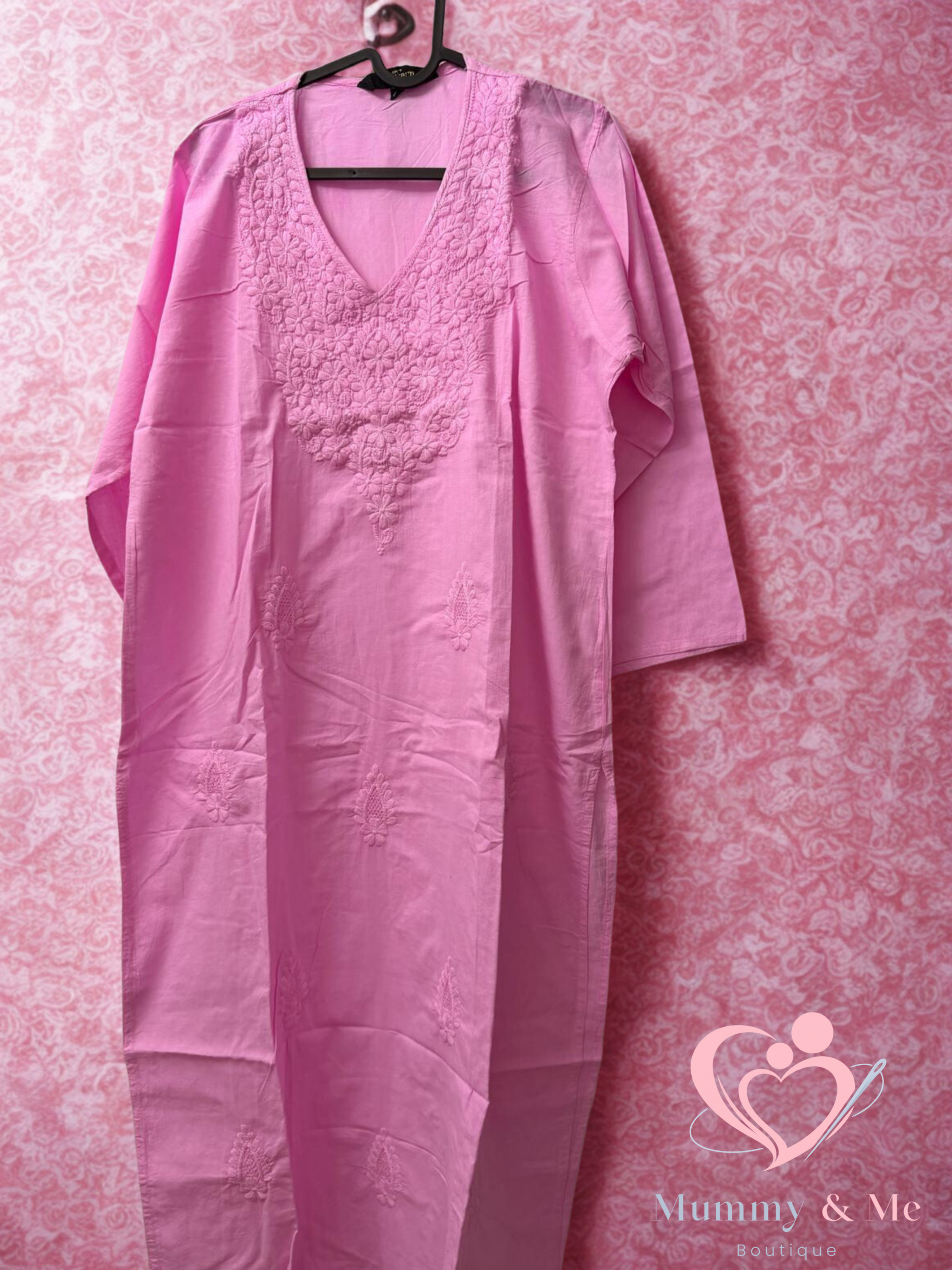 PINK PURE COTTON KURTI THREADWORK