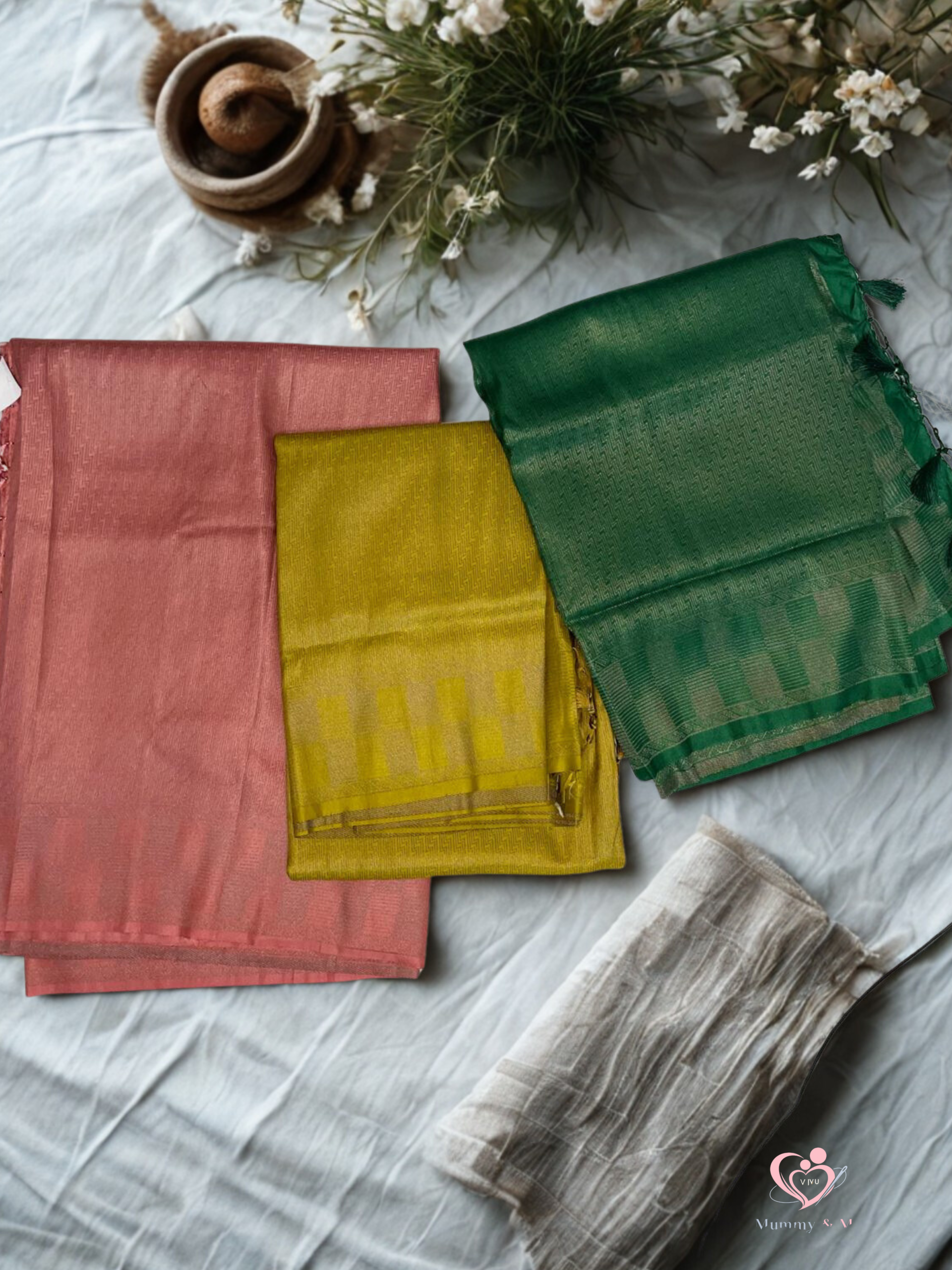 A Kubera silk saree made from soft and pure silk. Lightweight and comfortable to drape. Smooth texture with a subtle sheen. Rich woven or printed zari borders (gold or silver threadwork look). Classic motifsBright festive shades: maroon, royal blue, emerald green, mustard, magenta..