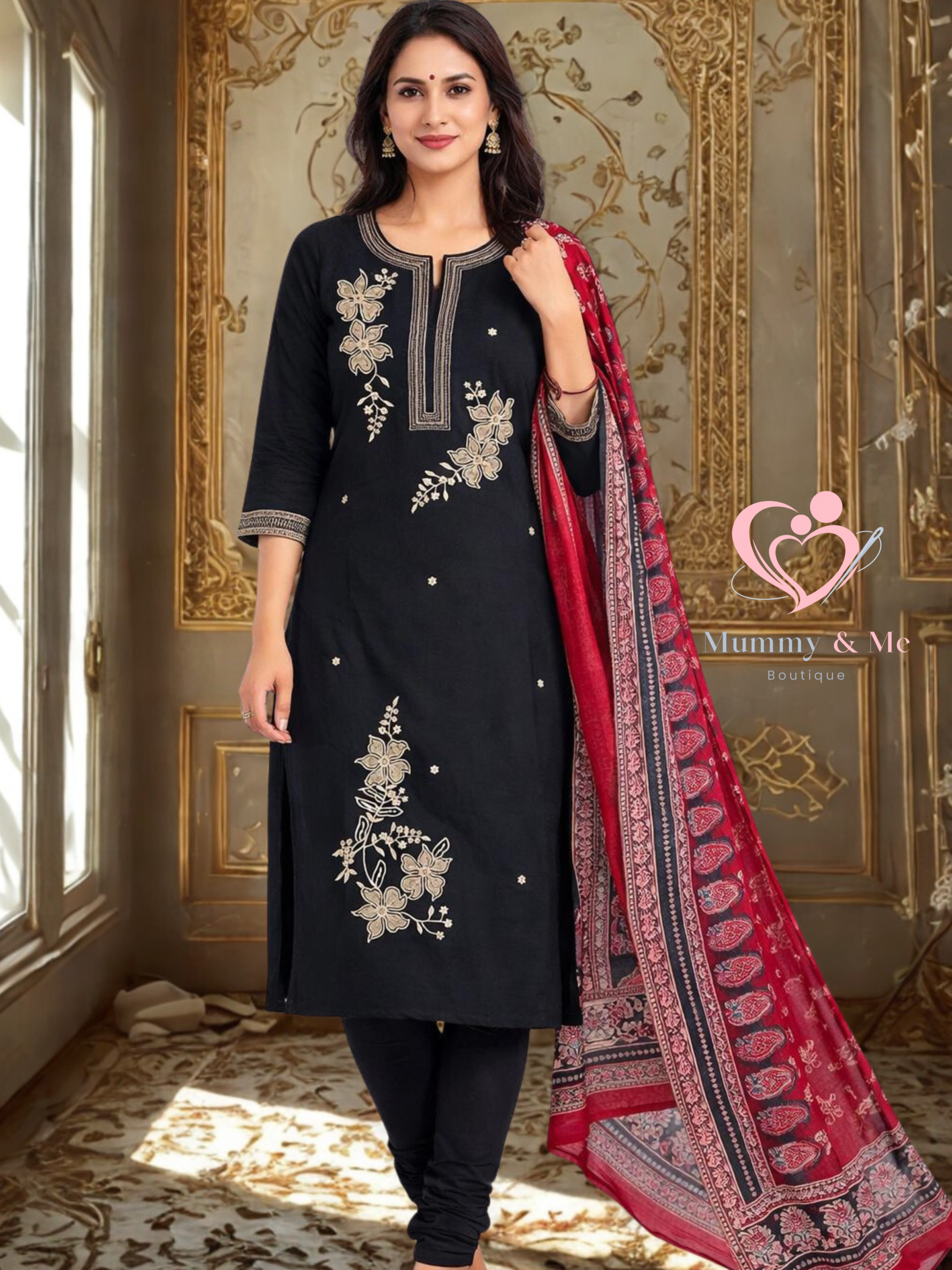 Three piece Churidar . Black coloured with thread work